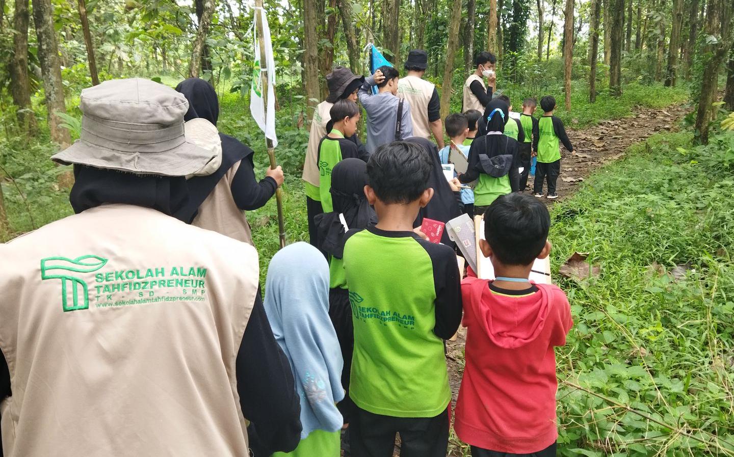Guru-guru dengan semangat memandu siswa dalam pengamatan mereka, menjelaskan konsep-konsep ilmiah dengan cara yang menarik dan interaktif. Foto ini menciptakan gambaran menarik tentang pendidikan di Sekolah Alam Tahfidzpreneur, di mana siswa tidak hanya belajar dari buku, tetapi juga melalui interaksi langsung dengan lingkungan alam mereka. Suatu pengalaman pembelajaran yang membangun rasa keterkaitan antara manusia dan alam, sambil merangsang rasa ingin tahu dan pemahaman mendalam tentang kehidupan di sekitar kita.
